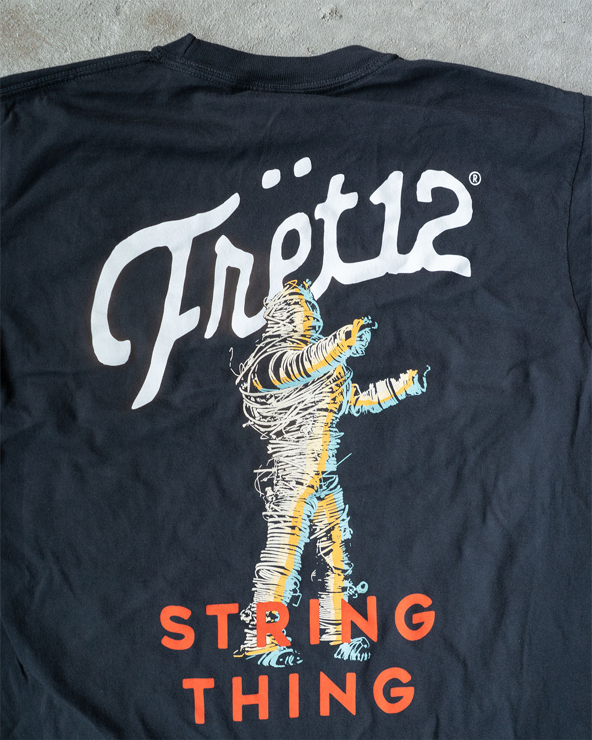 Behold, the return of the String Thing: from the depths of the underground scene, from the wildest pits of the darkest basement shows, he rises to grace this scary-good new horror-inspired tee.