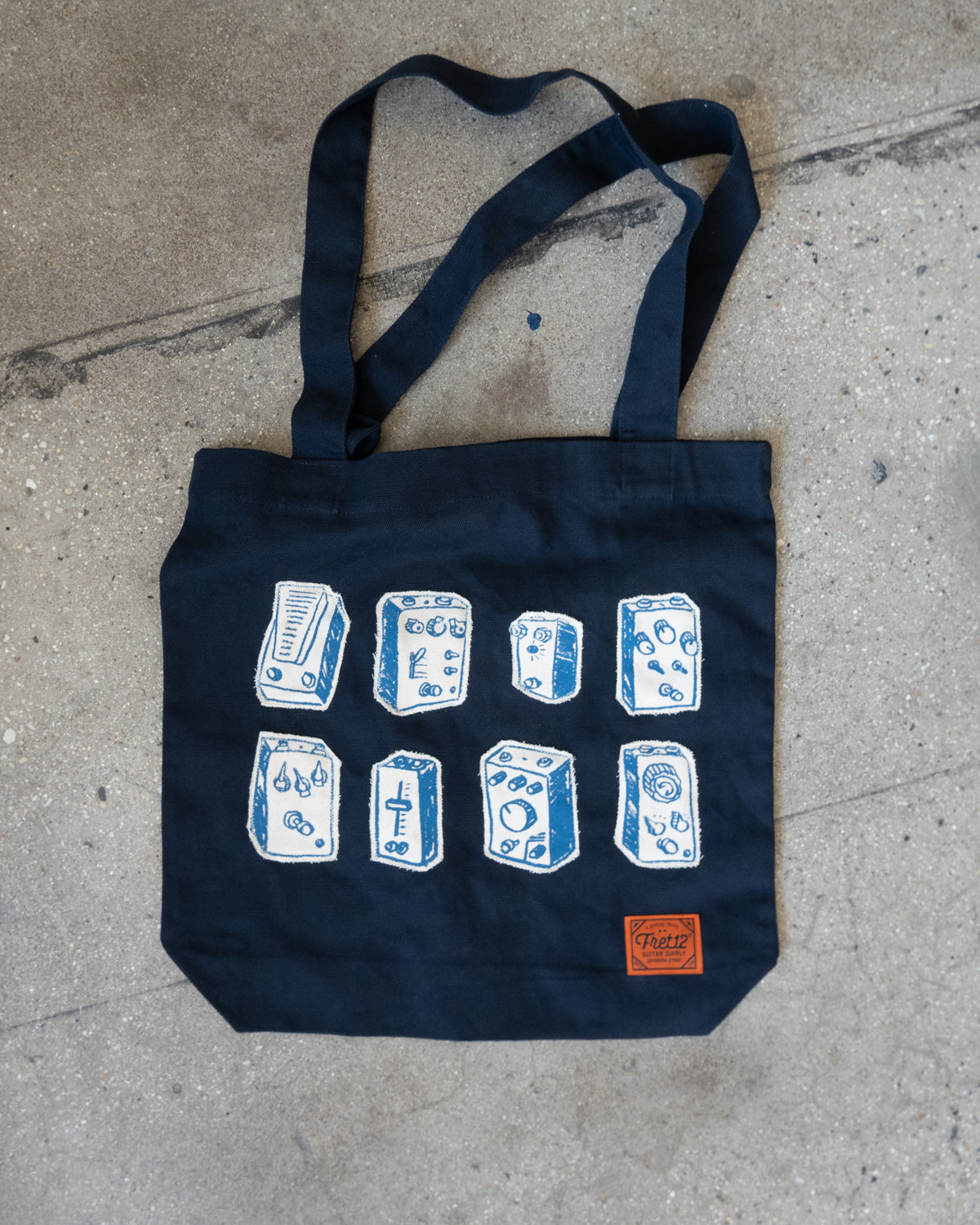 We made four one-of-a-kind record bags using screen-printed pedals that were individually cut and sewn into unique compositions.