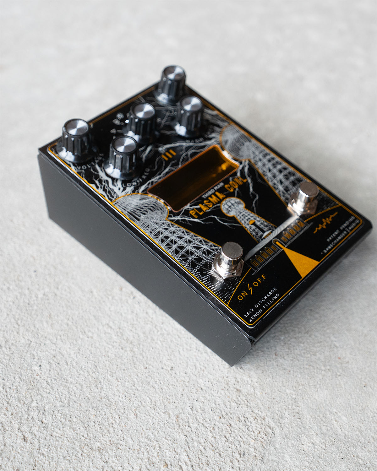 The PLASMA Coil is used by Jack White on the Raconteurs’ latest album Help Us Stranger, in the subsequent tour and upcoming projects. At its heart is Gamechanger’s innovative High Voltage Distortion technology that expresses audio signal as a series of electrical discharges. Even though they’ve been printing the words: “High Voltage Rock’n’Roll” on t-shirts since 1973, PLASMA Distortion is the first commercial musical device that literally amplifies the audio signal to 3500 Volts. Plasma Coil takes High Voltage distortion to new heights by adding multiple Octave-style circuits, and an additional Effects footswitch that can be toggled as latching or momentary.