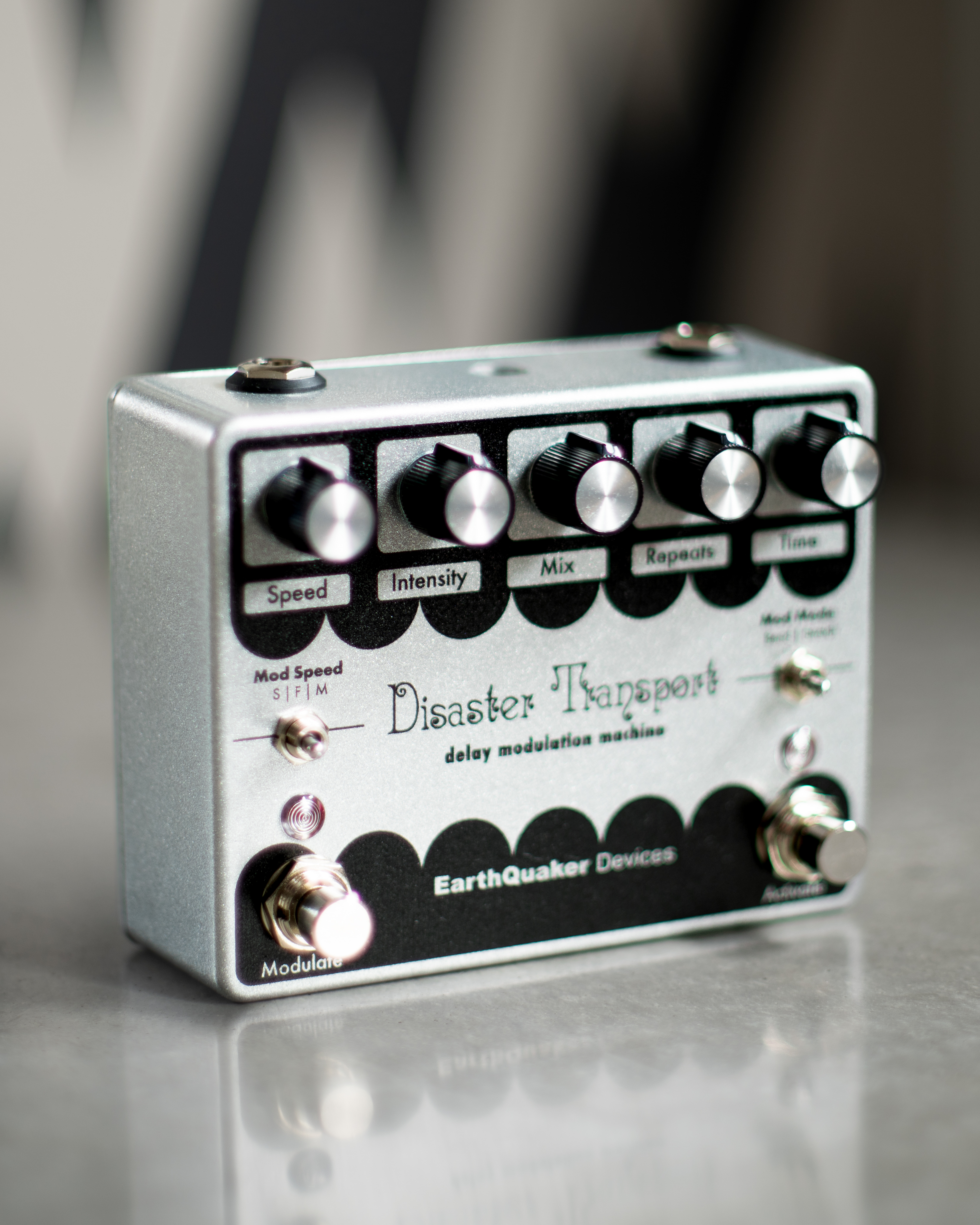 Limited to 3,500 units worldwide. Behold! The newest incarnation of one of our most beloved pedals ever, the Disaster Transport. For those of you well versed in the pedal’s celebrated history, you might notice some differences on this beautifully sparkly box. A new Mod Mode switch allows you to bend or stretch the modulation wave. The new Mod Speed switch offers three rates of modulation, from bizarrely animated gradual climbs and steep drop offs to rapid chorus and intense vibrato.