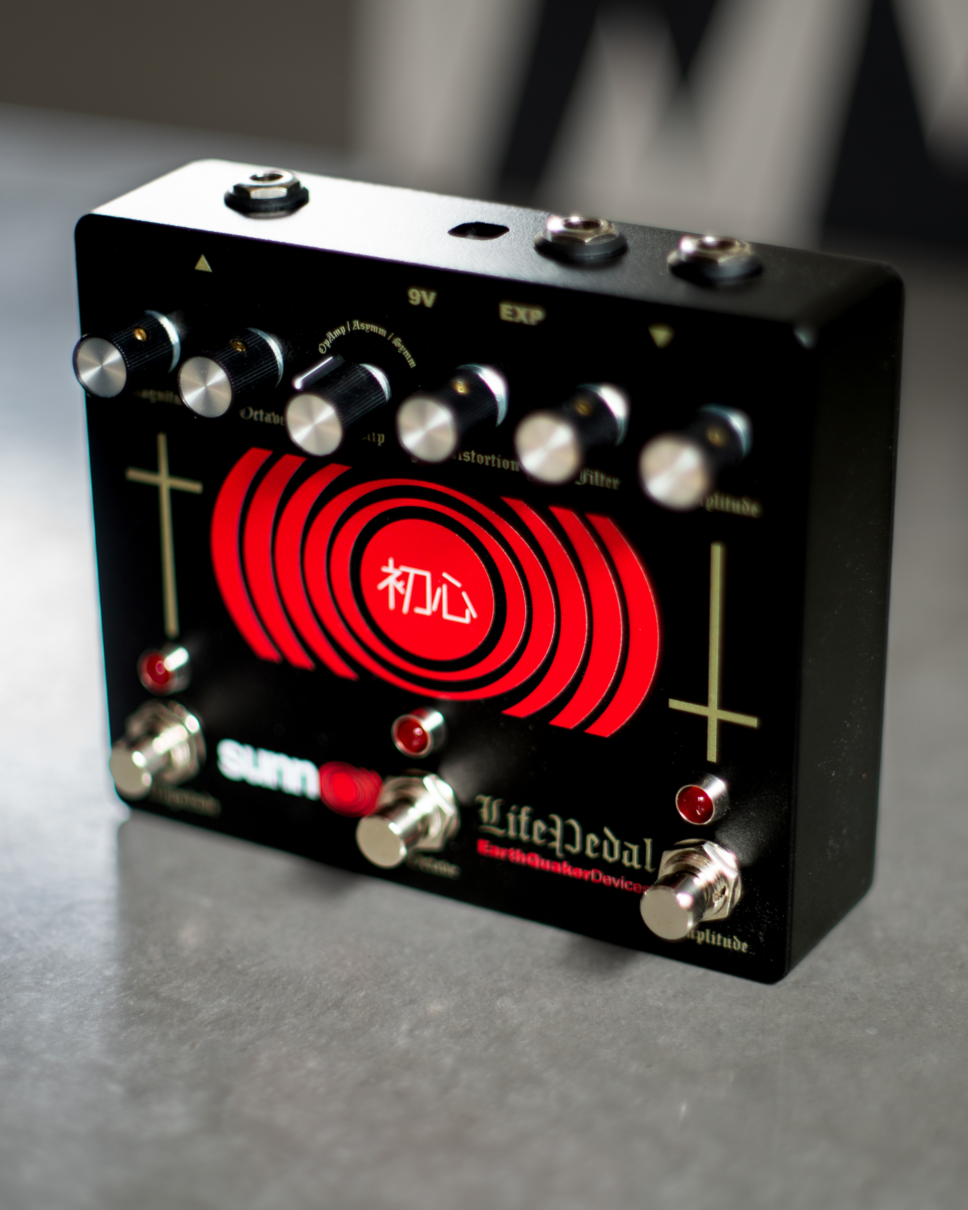 Sunn O))) and EarthQuaker Devices are pleased to bring you the Sunn O))) Life Pedal V3. The Sunn O))) Life Pedal circuit has been meticulously tweaked from the original to squeeze every last drop of heavy crushing tone available. The octave section has been fine tuned to make it more pronounced without losing the bottom end and we added a third footswitch, utilizing Flexi-Switch Technology®, for the octave to allow an additional method of quick and radical tone shaping. We are excited to have this back in permanent production, it is a true labor of love.